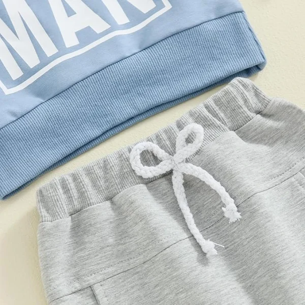 سويت شيرت بأكمام طويلة مزين برسمة حروف وبنطال رياضي للأولاد البيبي، طقم ملابس شت