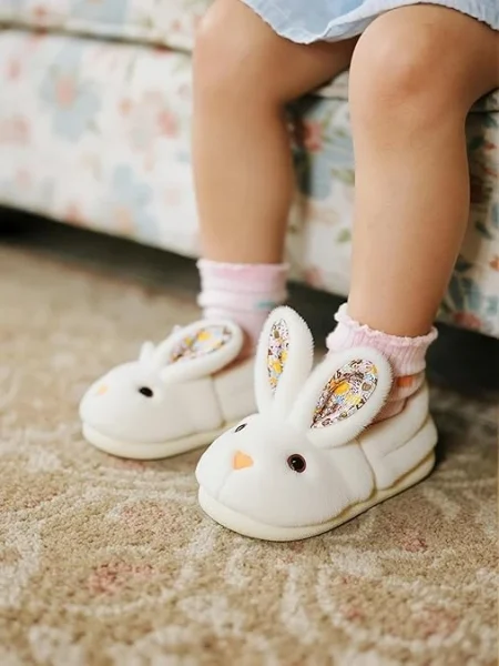 شبشب شتوي بتصميم أرنب للأولاد والبنات، حذاء منزلي ناعم ومانع للانزلاق للأماكن الداخلية وغرفة النوم