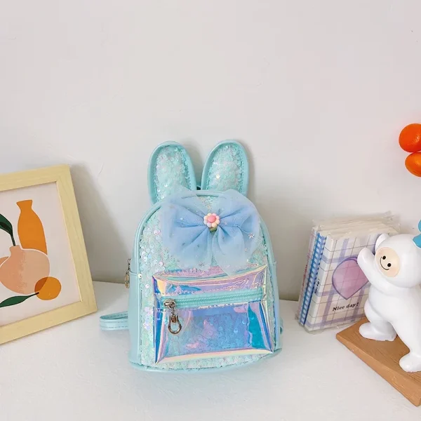 حقيبه كتف للبنات الصغار باللون السماوي بفيونكه والخرز الملونالمواد :جلد صناعيالقياسات : 19*10*20 سم