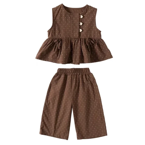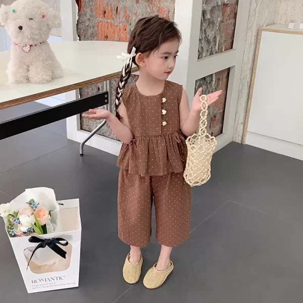 طقم ملابس من قطعتين عباره عن بلوزه بدون اكمام وبنطلون بنظام فضفاضمناسب للصيف