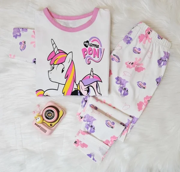 طقم بيجاما جميله للفتيات بطبعات رسوم على شكل حصان ناعمهبتصميم بسيط للمنزل واللعب ووقت النومالقماش:قطن95% ليكرا 5%