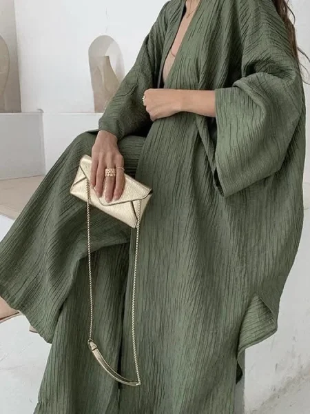 طقم ثلاث قطع – فريسكا مستورد بضي قطن ناعم✨ الخامة: الماتريال فريسكا مستورد، جودة عالية ولمسة ناعمة، بضي قطن يعطي راحة وتهوية ممتازة، مثالي لأجواء الخليج.👗 التصميم: طقم أنيق مكوّن من ثلاث قطع: - كاب واسع بستايل فخم - بنطلون مريح بقصة ناعمة - توب داخلي بسيط وأنيق💫 المميزات: - ملمس ناعم على الجسم - قصّة مرتبة تعطي لوك راقي - مناسب للطلعات، المناسبات، وحتى للدوام وللسفر🎨 الألوان: يتوفر بألوان هادية وعصرية تناسب كل الأذواق