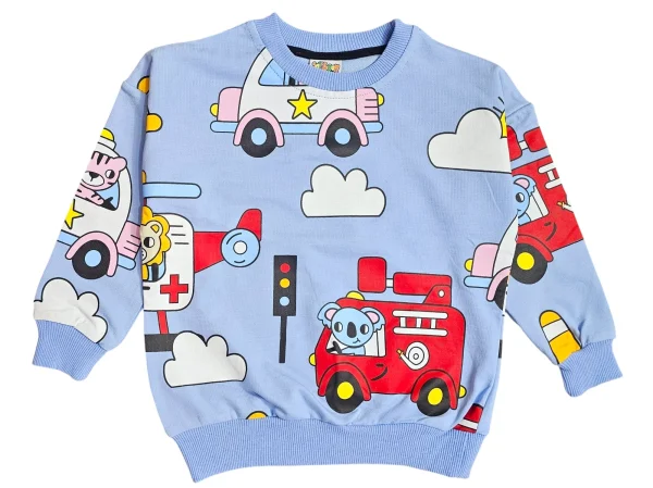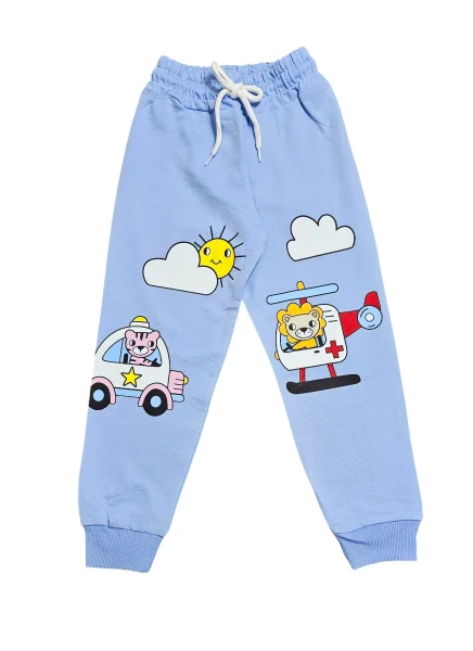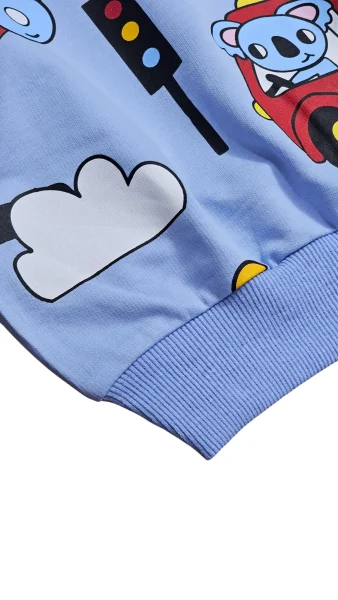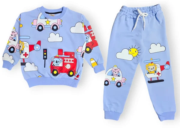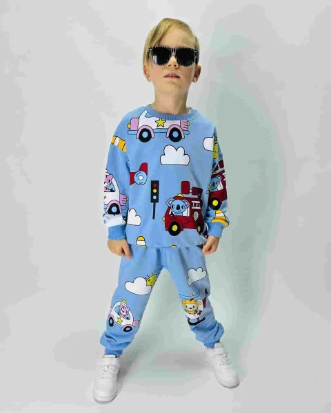 طقم ولادي جميل وانيق بتصميم كاجوال مكون من تيشرت بطبعات كرتونيه وبنطال بخصر مطاطي مناسب في الاجواء الباردهالقماش:قطن
