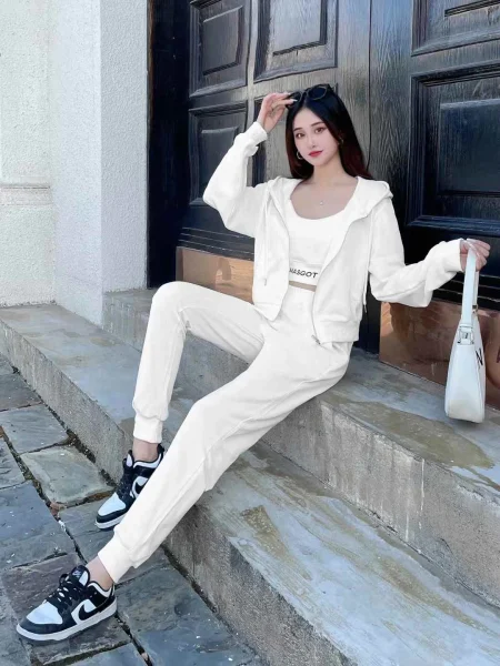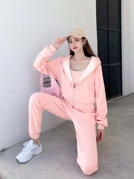 بدله بطابع كاجوال مثاليه للاستخدام اليومي للاستخدام اليومي او الخروجات الغير رسميهتتكون من ثلاث قطع بتصميم عملي وانيق:القطعه العلويه : جاكيت بكم طويل مع قبعه هوديمزوده بسحاب في المنتصف لسهوله الارتداءتصميمه بسيط ومريحقطعه داخليه كت ناعمه ومريحهالقطعه السفليهبنطلون واسع بقصه مريحه مما يمنحه طابعا عملياالقماش:قطن