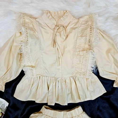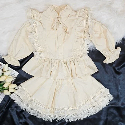 بدله بناتيه جميله وانيقه من بلوزه انيقه باكمام طويله وتنوره مزينه بطبقات من الكشكشه الجميلهالقماش:قطن