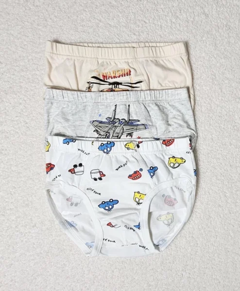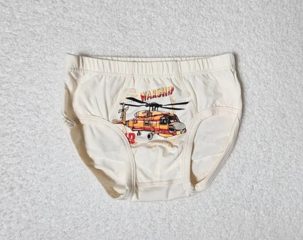 المنتج عبارة عن مجموعة ملابس داخلية للأطفال تحتوي على ثلاث قطع.تتميز بتصاميم جذابة تتضمن رسومات للطائرات الهليكوبتر والطائرات المقاتلة والسيارات والشخصيات الكرتونية.هذه الملابس مصنوعة من مواد ناعمة وعالية الجودة لتوفير أقصى درجات الراحة للأطفال طوال اليوم.**المزايا العامة للمنتج:**1. **جودة عالية:** مصنوعة من مواد متينة وناعمة.2. **تصاميم جذابة:** توفر متعة بصرية للأطفال بتنوع رسوماتها.3. **راحة قصوى:** مناسبة للاستخدام اليومي بفضل المواد القطنية اللطيفة على البشرة.4. **عزل البكتيريا:** تحتوي على طبقة مزدوجة في منطقة المنشعب لتعزيز النظافة.