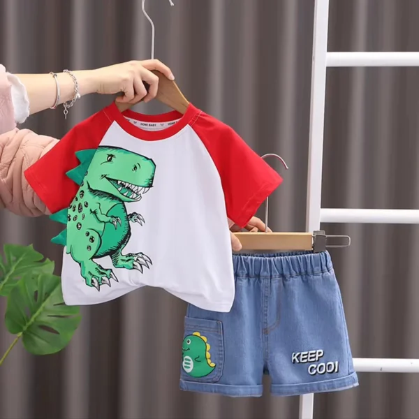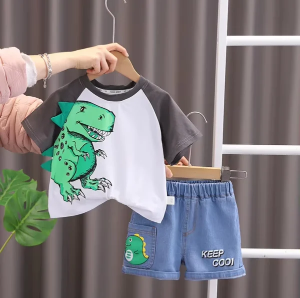 طقم من تيشرت برسوم كرتونيه بالوان جميله متناسقه وباكمام قصيرة وشورت من الجينز للمنزل واللعب وللتنزه مناسب للأجواء: الصيفيه والمعتدله القماش:95% قطن 5%بوليستر