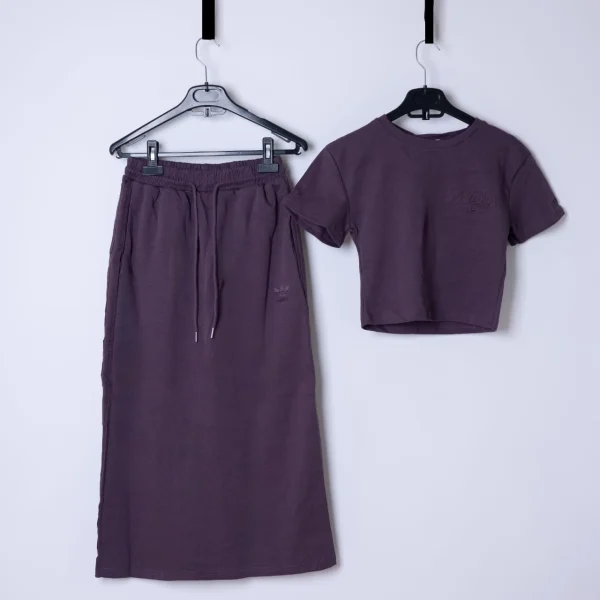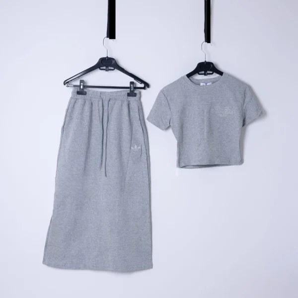 طقم رياضي مكون من توب قصير وسكيرت طويلة باللون الرمادي، يتميز بخامته المريحة وتصميمه العصري البسيط. الطقم يجمع بين الراحة والأناقة، مما يجعله خيارًا مثاليًا للإطلالات الرياضية أو الكاجوال.وقت الارتداء: مناسب للمشاوير اليومية، التسوق، أو الأنشطة الخفيفة مثل المشي أو اللقاءات غير الرسمية.