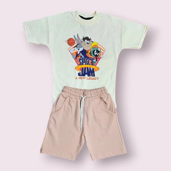 طقم ولادي صيفي مناسب للاجواء الصيفيه والمعتدله مكون من تيشرت برسوم شخصيه كرتونيه وشورت مريحمناسب بالمنزل وخارجهالقماش :قطن