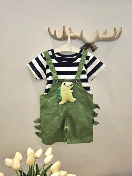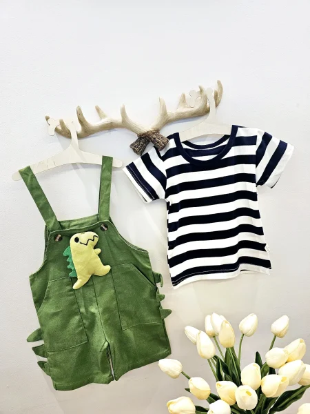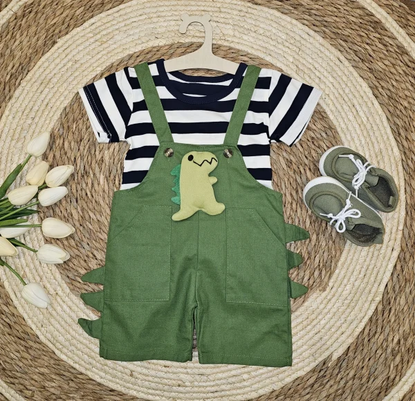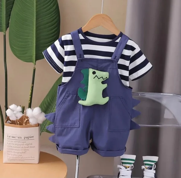 طقم ولادي مكون من قطعتين تيشرت مخطط باكمام قصيرة وبنطلون علاق برسوم كرتونيه لوقت اللعب بالمنزل وفي الرحلات و الانشطه الخارجيه مناسب للاجواء:الصيفيه والمعتدله القماش:95% قطن 5%بوليستر