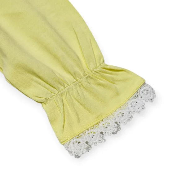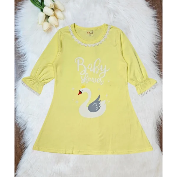 فستان اصفر جميل وانيق برسمه بجعه الفستان باكمام طويله مكشكشه ومزين بالدانتيل الانيق مناسب لجميع فصول السنه ومناسب للحفلات الخاصه واللبس اليومي